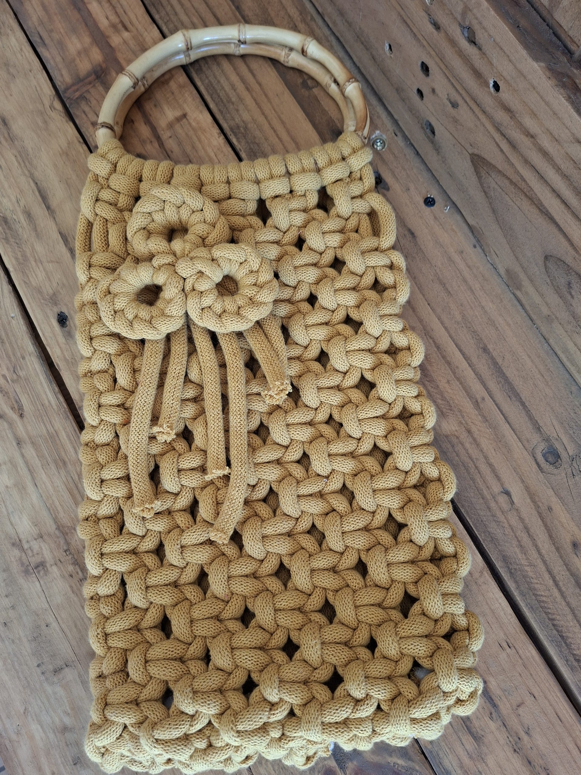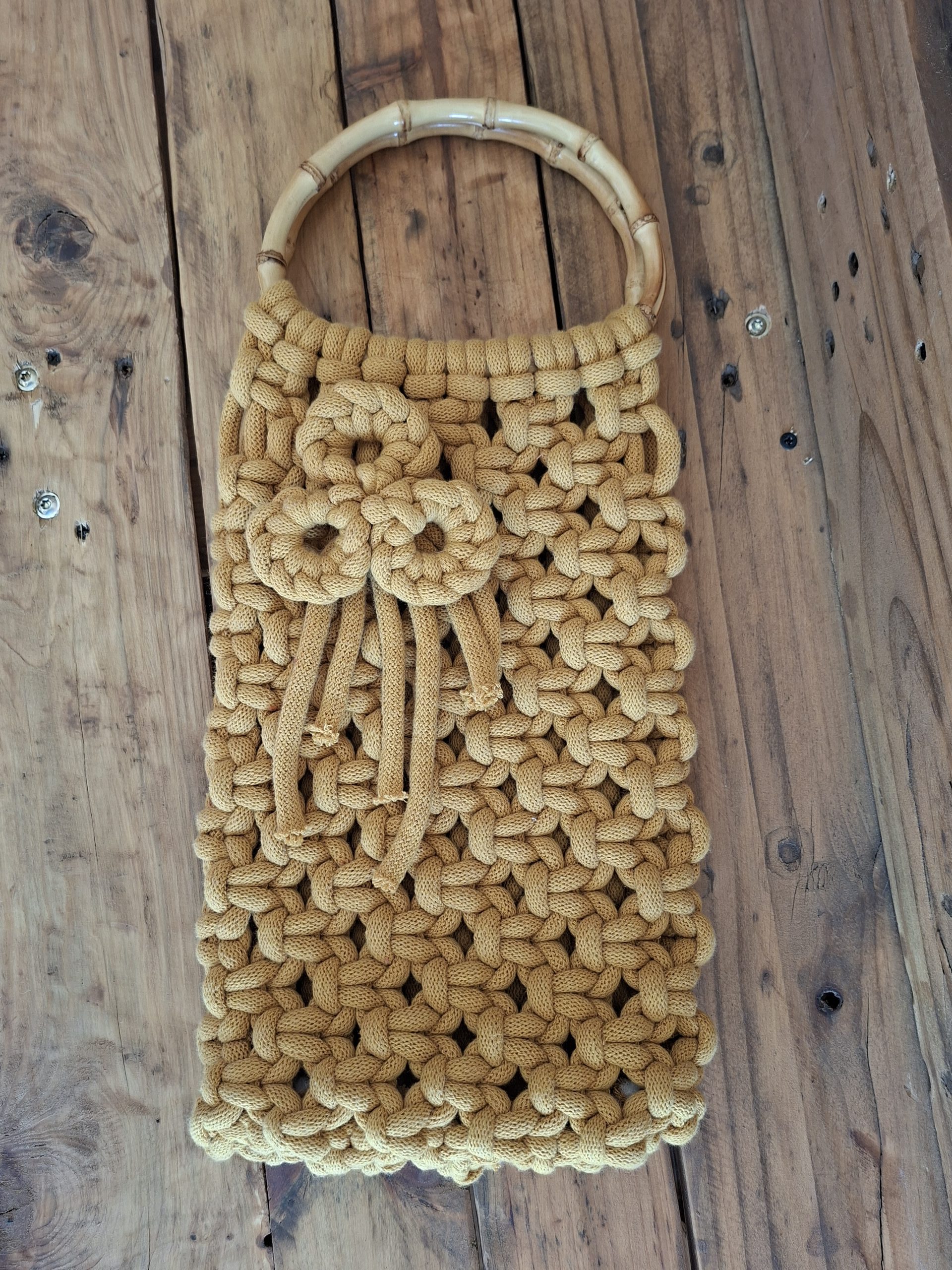 Odkryj wyjątkowe połączenie rękodzieła i naturalnego stylu. Ta torebka makramowa to doskonały wybór dla kobiet ceniących oryginalność, jakość i subtelny urok stylu boho. Ręcznie pleciona z wytrzymałego sznurka w kolorze musztardowym, zachwyca precyzyjnym splotem oraz naturalnymi bambusowymi uchwytami, które dodają jej lekkości i elegancji. Ozdobny chwostnadaje jej niepowtarzalny charakter. Unikatowy design – każda torebka jest jedyna w swoim rodzaju. Idealna na spotkania i codzienne wyjścia. Naturalne materiały i trwałe wykonanie