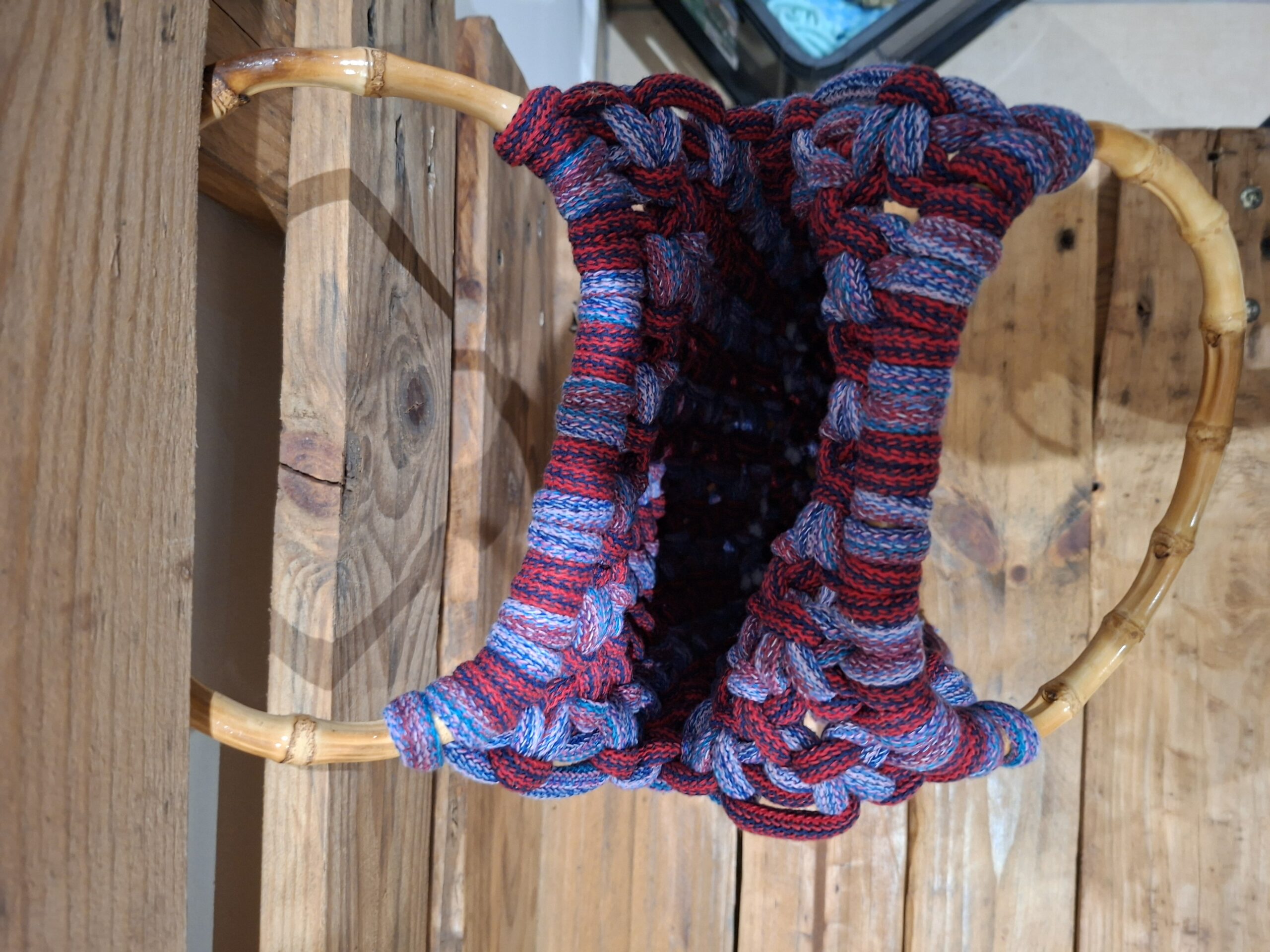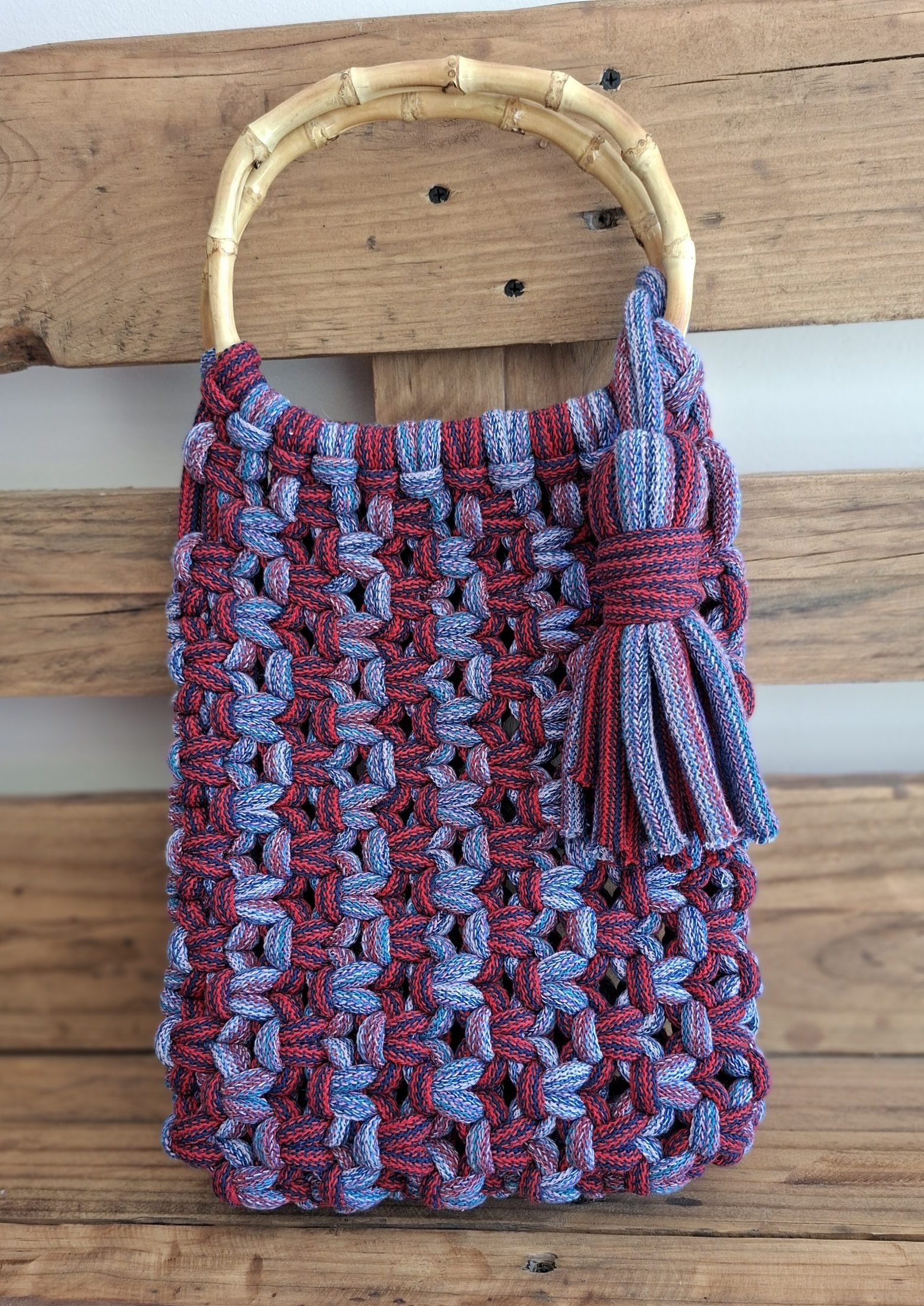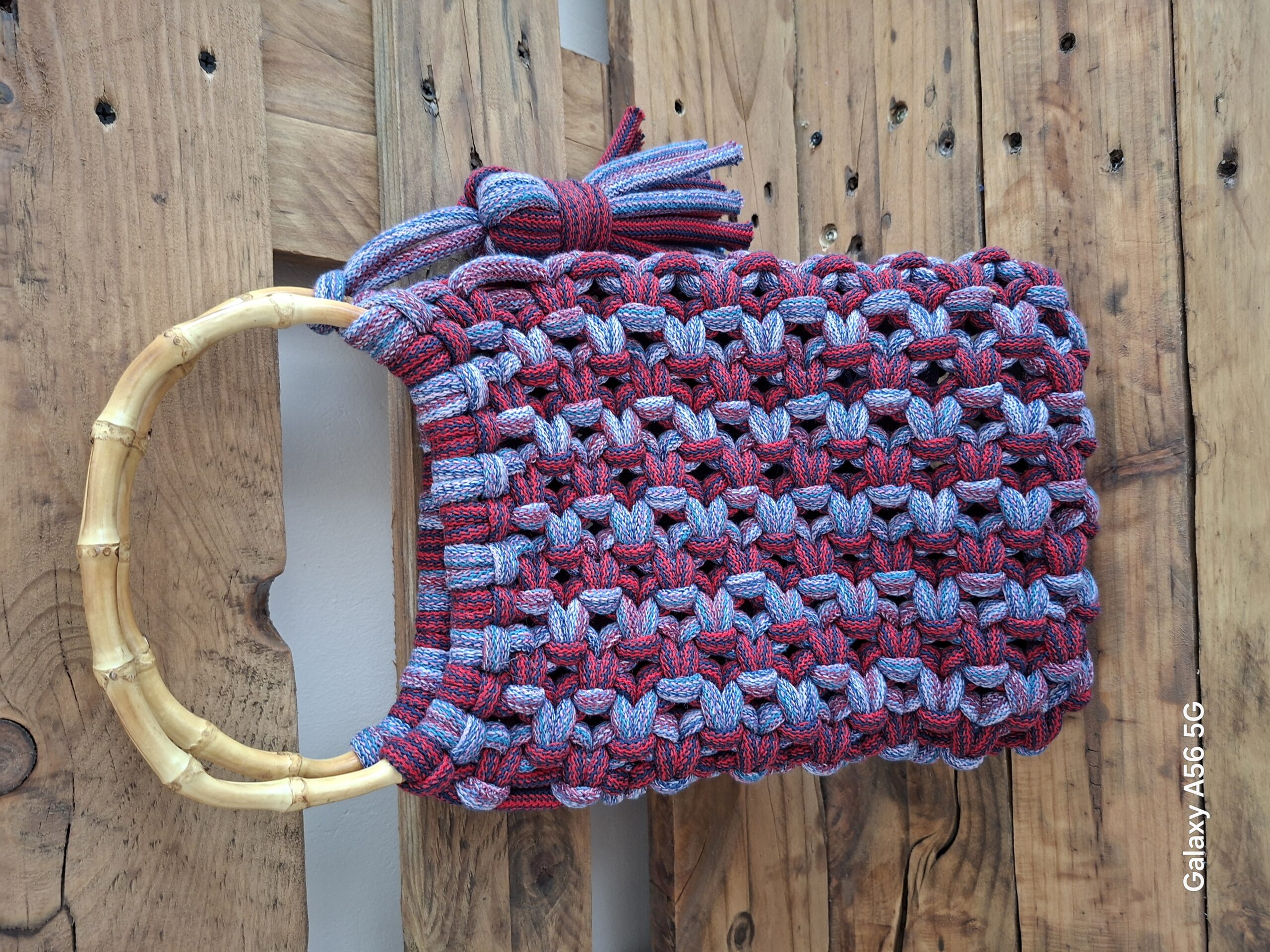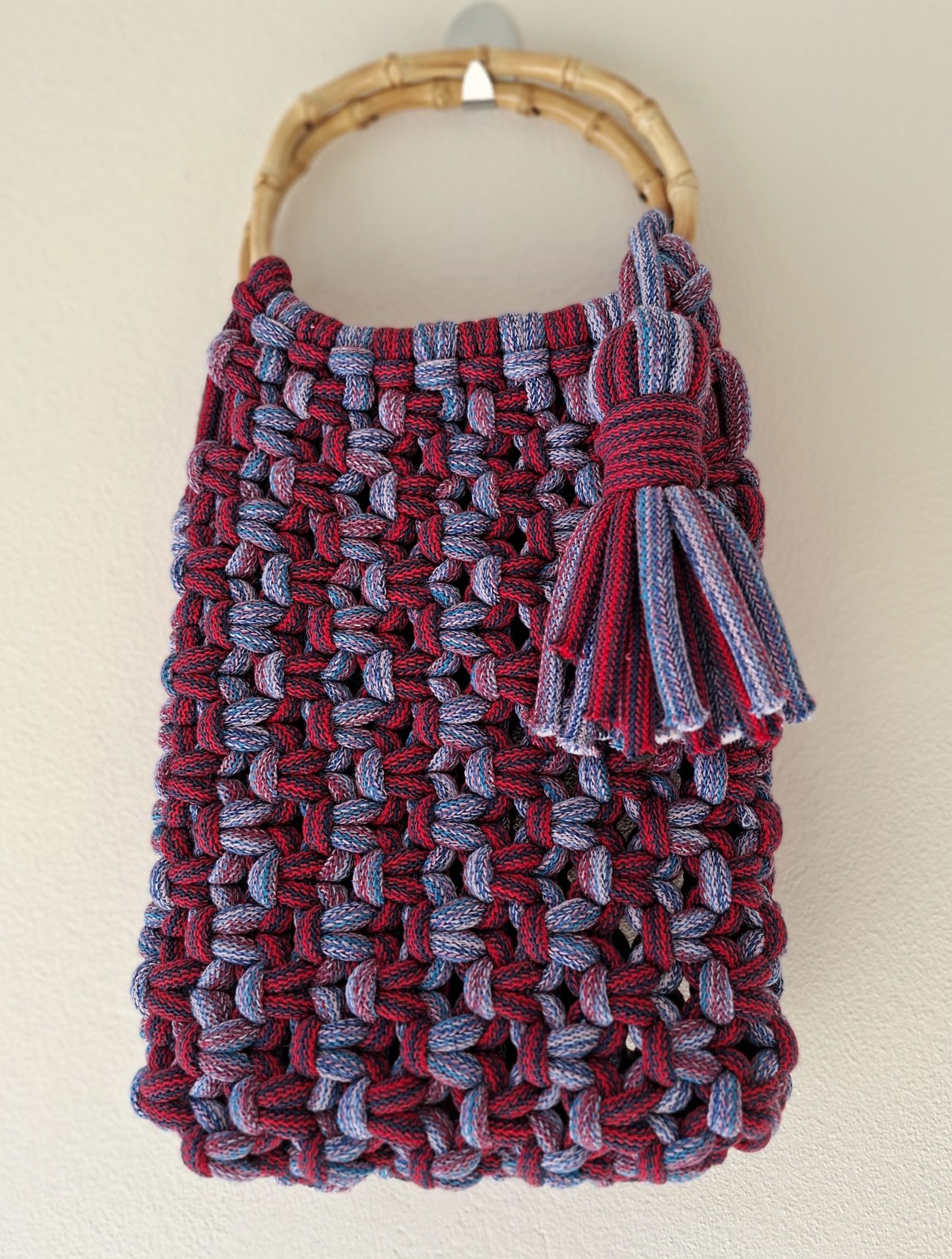 Odkryj wyjątkowe połączenie rękodzieła i naturalnego stylu. Ta torebka makramowa to doskonały wybór dla kobiet ceniących oryginalność, jakość i subtelny urok stylu boho. Ręcznie pleciona z wytrzymałego sznurka w odcieniach fioletu i niebieskiego, zachwyca precyzyjnym splotem oraz naturalnymi bambusowymi uchwytami, które dodają jej lekkości i elegancji. Ozdobny chwost nadaje jej niepowtarzalny charakter. Unikatowy design – każda torebka jest jedyna w swoim rodzaju. Idealna na spotkania i codzienne wyjścia. Naturalne materiały i trwałe wykonanie