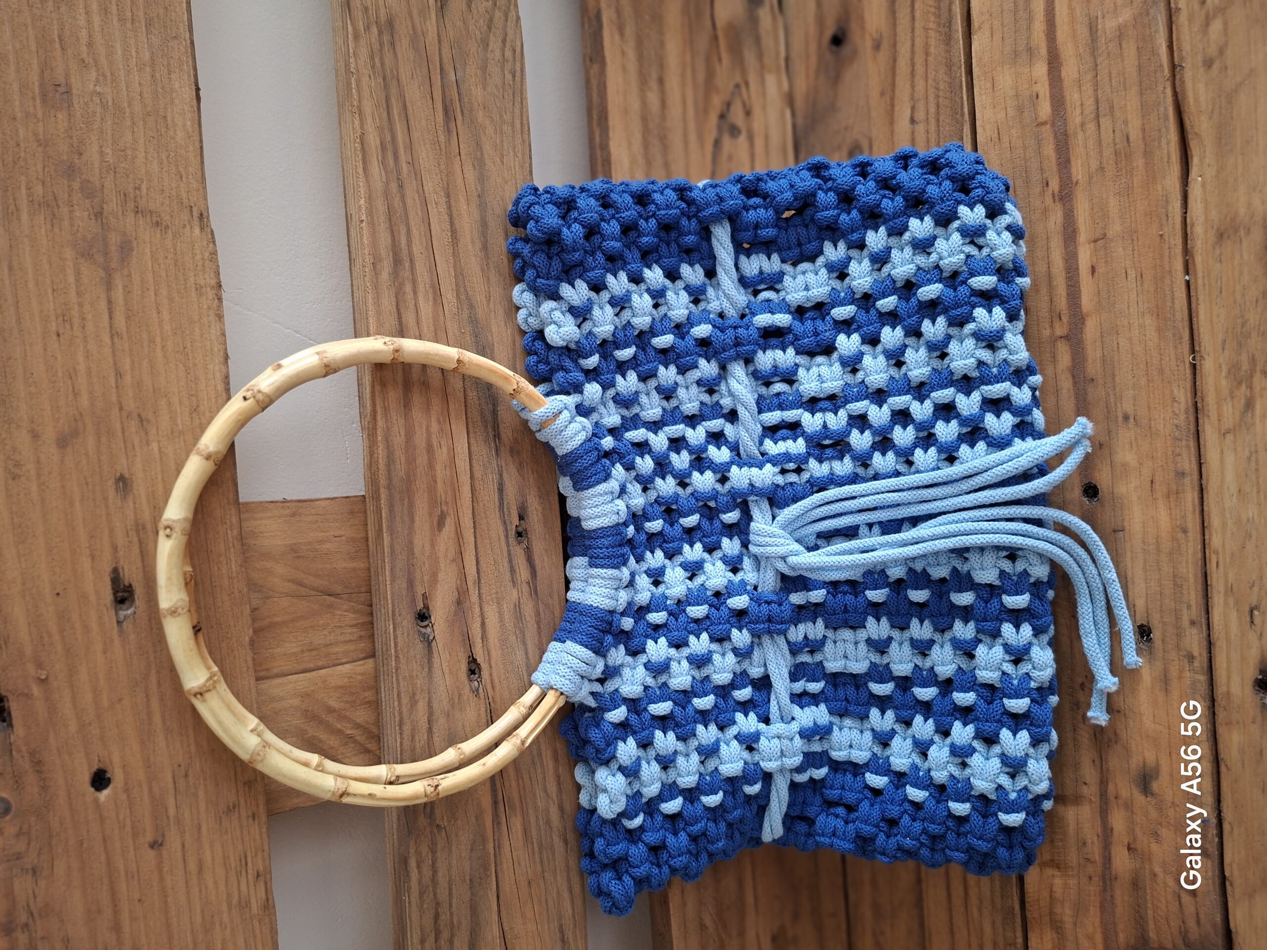 Stylowa i wyjątkowa torba wykonana techniką makramy z grubego, trwałego sznurka bawełnianego w odcieniach niebieskiego. Naturalne uchwyty z bambusa dodają jej uroku i sprawiają, że idealnie pasuje do każdej stylizacji. Idealna do pracy, do codziennych stylizacji, czy na wyjście z przyjaciółmi. Stylowa i niepowtarzalna.
