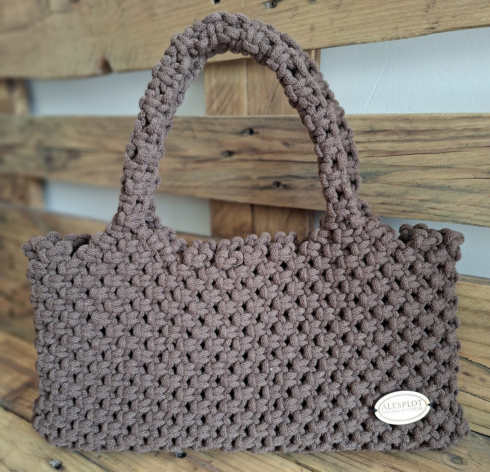 Elegancka, ręcznie wykonana torebka w ciepłym odcieniu kakao. Powstała ze sznurka bawełnianego o wyrazistym, dekoracyjnym splocie, który nadaje jej wyjątkowej struktury i charakteru. Wygodne uchwyty sprawiają, że doskonale sprawdzi się jako stylowa torebka na co dzień – do pracy, na spacer czy spotkanie.